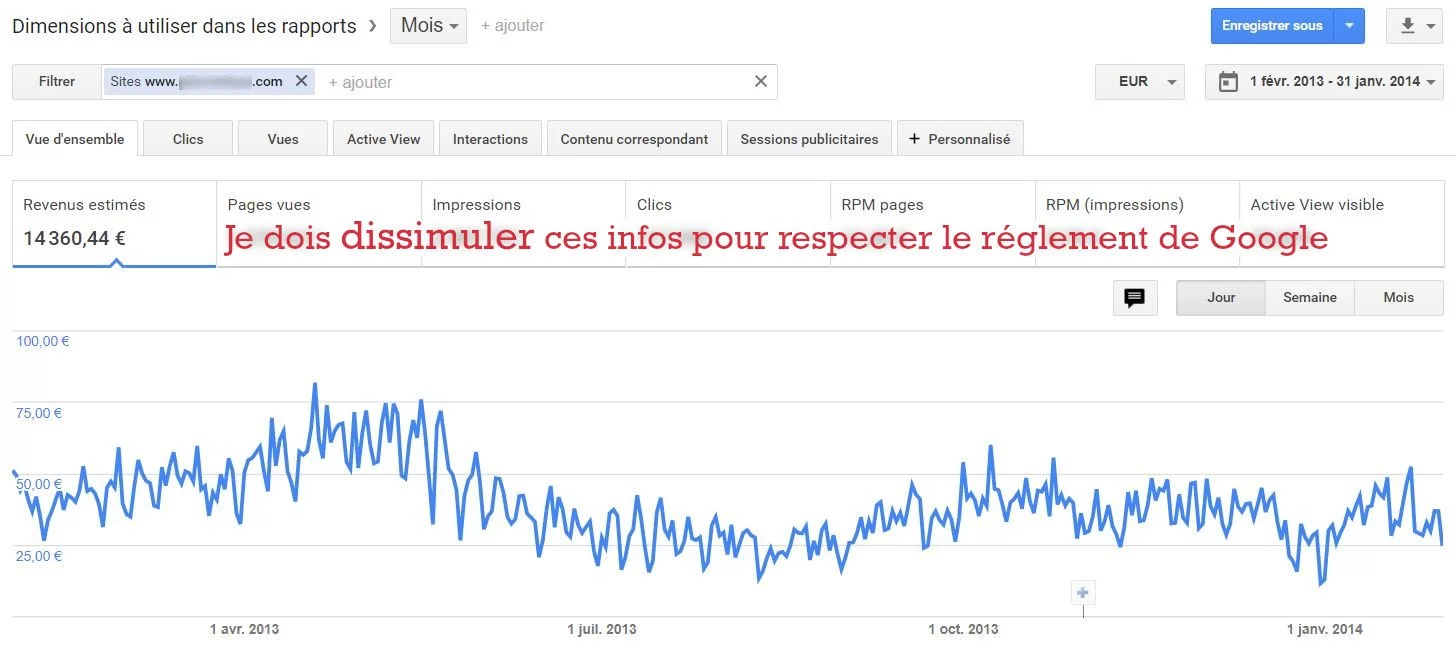 I started to get serious about it in 2008/2009 and made AdSense my spearhead. For a few years, I focused on the creation of sites called MFA (Made For AdSense) , sites that aim to generate automatic income through advertising. My objective was to acquire maximum of traffic and to optimize my advertisements, to maximize my click-through rate (CTR) and therefore my eCPM (income per 1000 views).